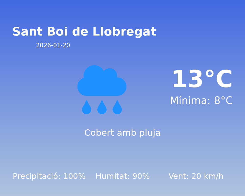 Bon dia, veïns de Sant Boi de Llobregat! Avui us oferim la predicció meteorològica d’aquest 20 de gener de 2026, en què el temps es presenta molt canviant i cal prendre algunes precaucions.