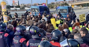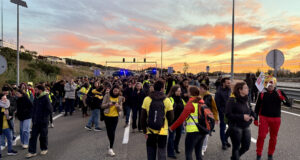 Els professors en vaga tallen la C-32 i l’N-II a Mataró...